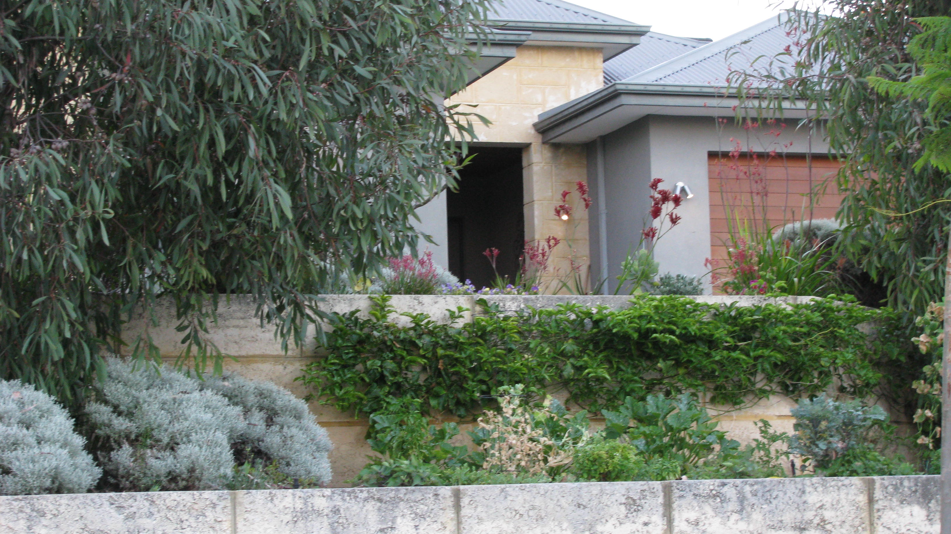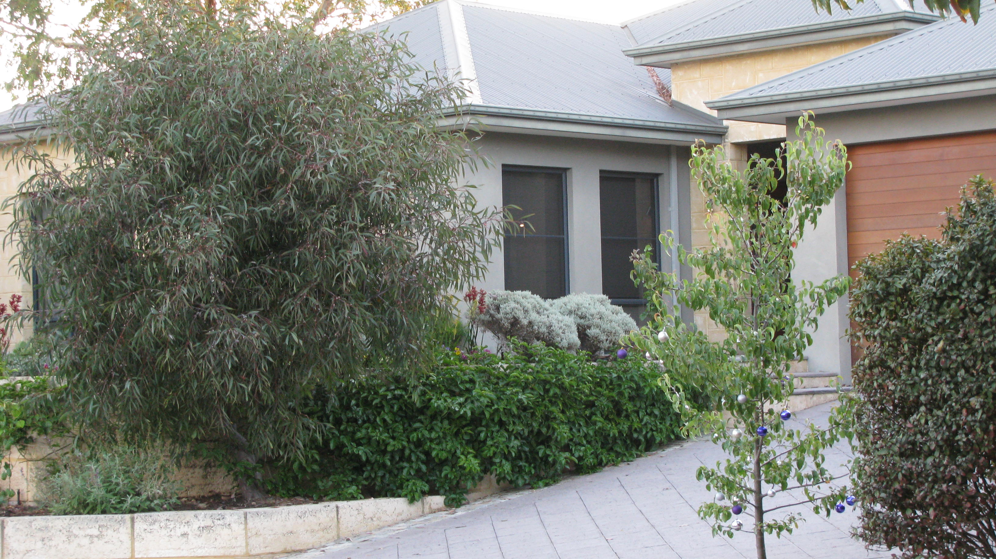 Cobblestone pavers were laid to gaps between the steep driveway and garden beds. Plantings of trees such as ornamental pear and jacaranda; coastal daisy bush, kangaroo paw and agapanthus were undertaken in the front and backyard. Walls were screened with passionfruit vines. Reticulation was upgraded.